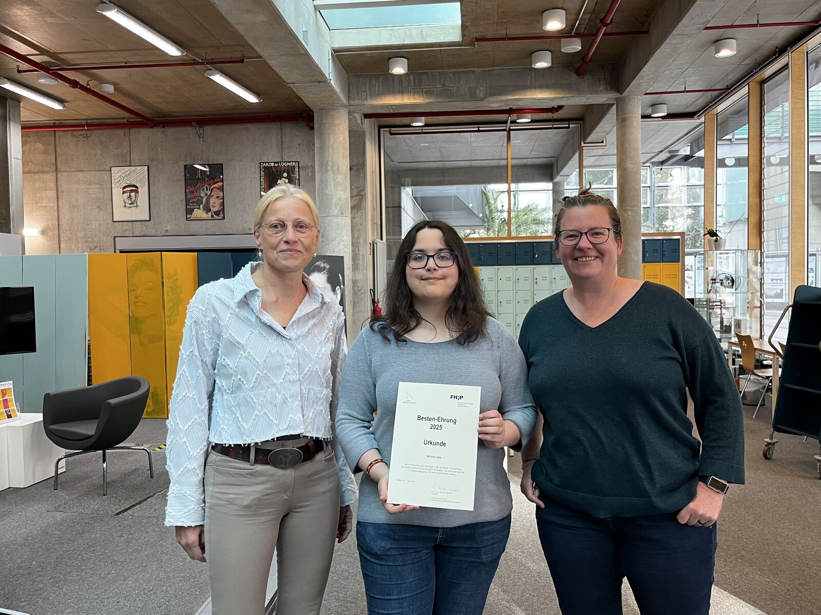 Die Landesfachstelle für Archive und Öffentliche Bibliotheken Brandenburg hat Filmuni-Auszubildende Melinda Utke für ihren herausragenden Abschluss der Berufsausbildung zur Fachangestellten für Medien- und Informationsdienste eine Ehrenurkunde verliehen. Als Zweitbeste ihres Jahrgangs hat sie die Abschlussprüfung mit der Note “sehr gut” abgelegt. Wir gratulieren Frau Utke herzlich und sind sehr stolz auf ihre Leistung!